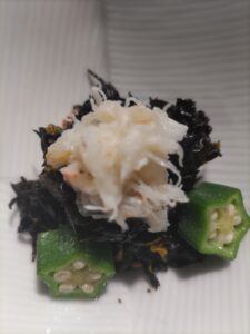 定番の人参や油揚げのほかに菊の花も合わせて、ひじきを炊きました お通し用ですので、天盛には毛ガニのほぐし身を、彩りにはオクラを盛り合わせて提供いたします #ひじき煮 #お通し #レストラン #昭和歌謡動画が流れる店 #酒 … Read more