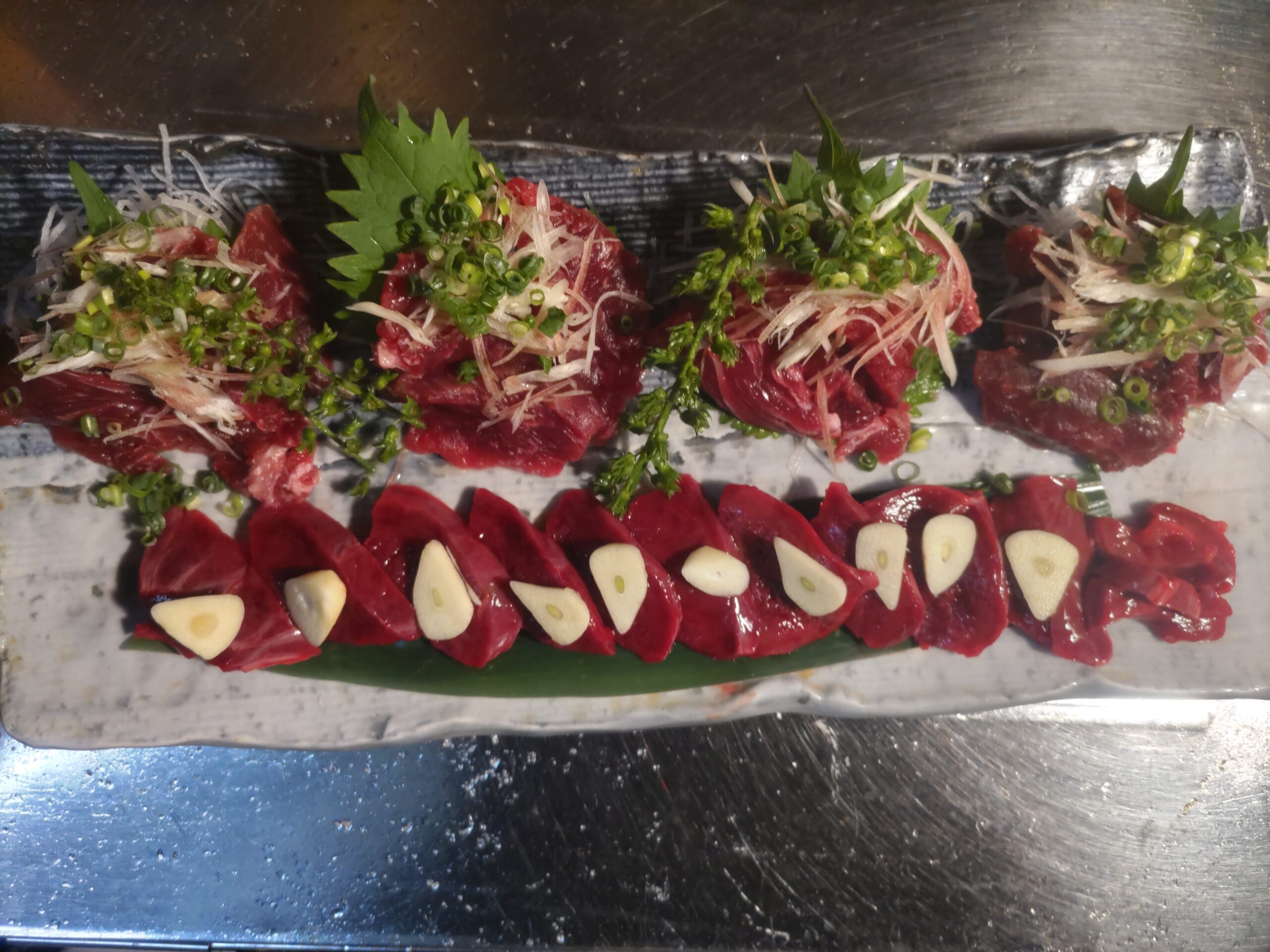 「前回食べて旨かったから、会社の同僚連れてきたよ~」とのことで、もうかの星(もうかサメの心臓)と本鮪のノド肉を盛り合わせてお刺身でご提供
