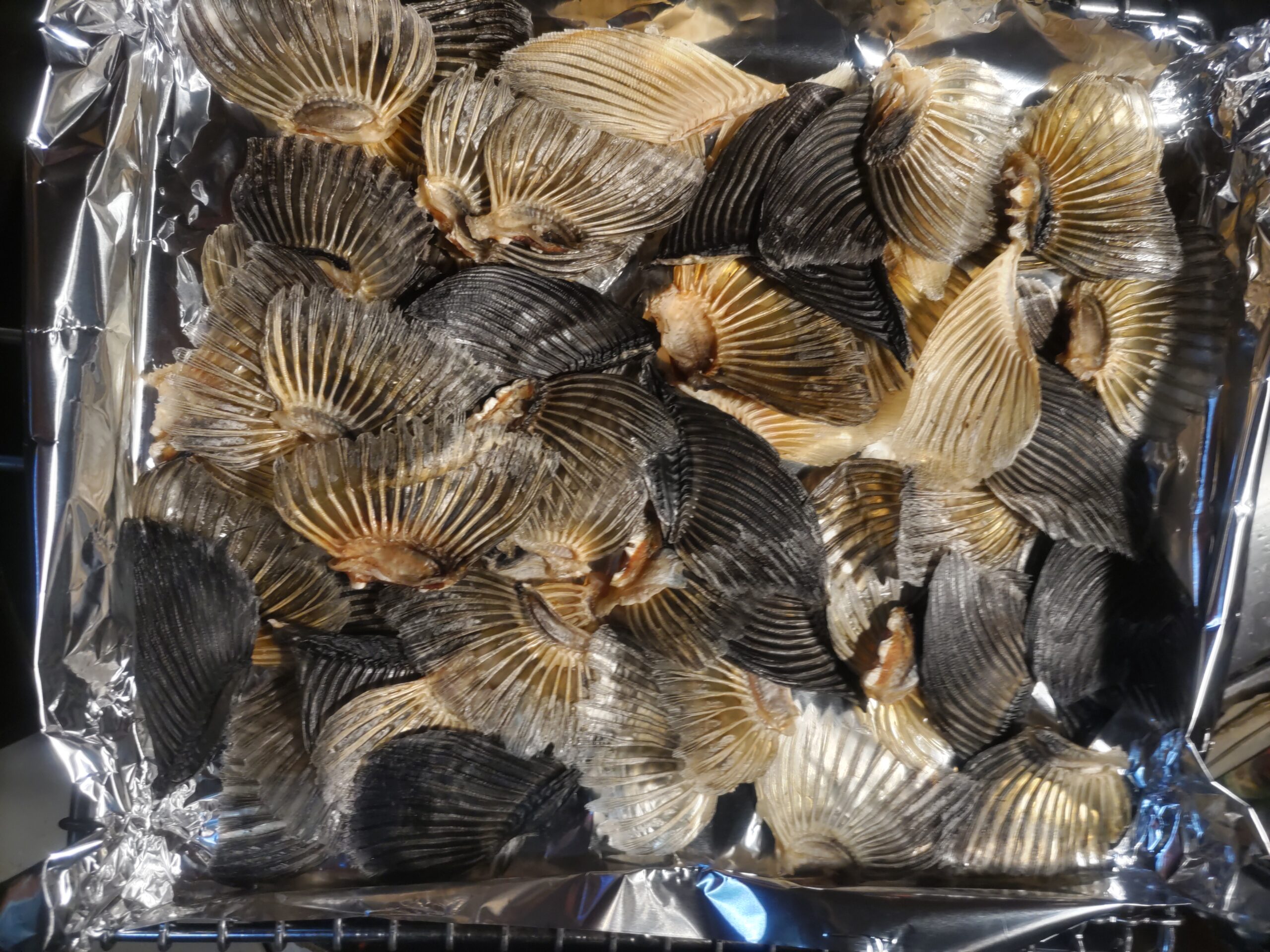例年より少し早めですが、ひれ酒始めます 元々が薄くて焦げやすい材料ですので、遠火の弱火でじっくり煎餅のような状態まで焼き上げます 元の重さの8割ぐらいになります 熱々の酒を注ぎ、少し蒸らしてからお召し上がりいただきます