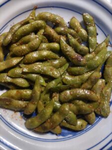 お酒の吸い込みの良いお客様ですが、おつまみはいつも軽めのものをご要望 そこで今回は「枝豆のガーリック七味焼」をご提供 硬めに茹でた枝豆をフライパンに移し、ごま油とガーリックで焼き付け仕上げに、醤油と七味で仕上げ 皮をしゃ … Read more