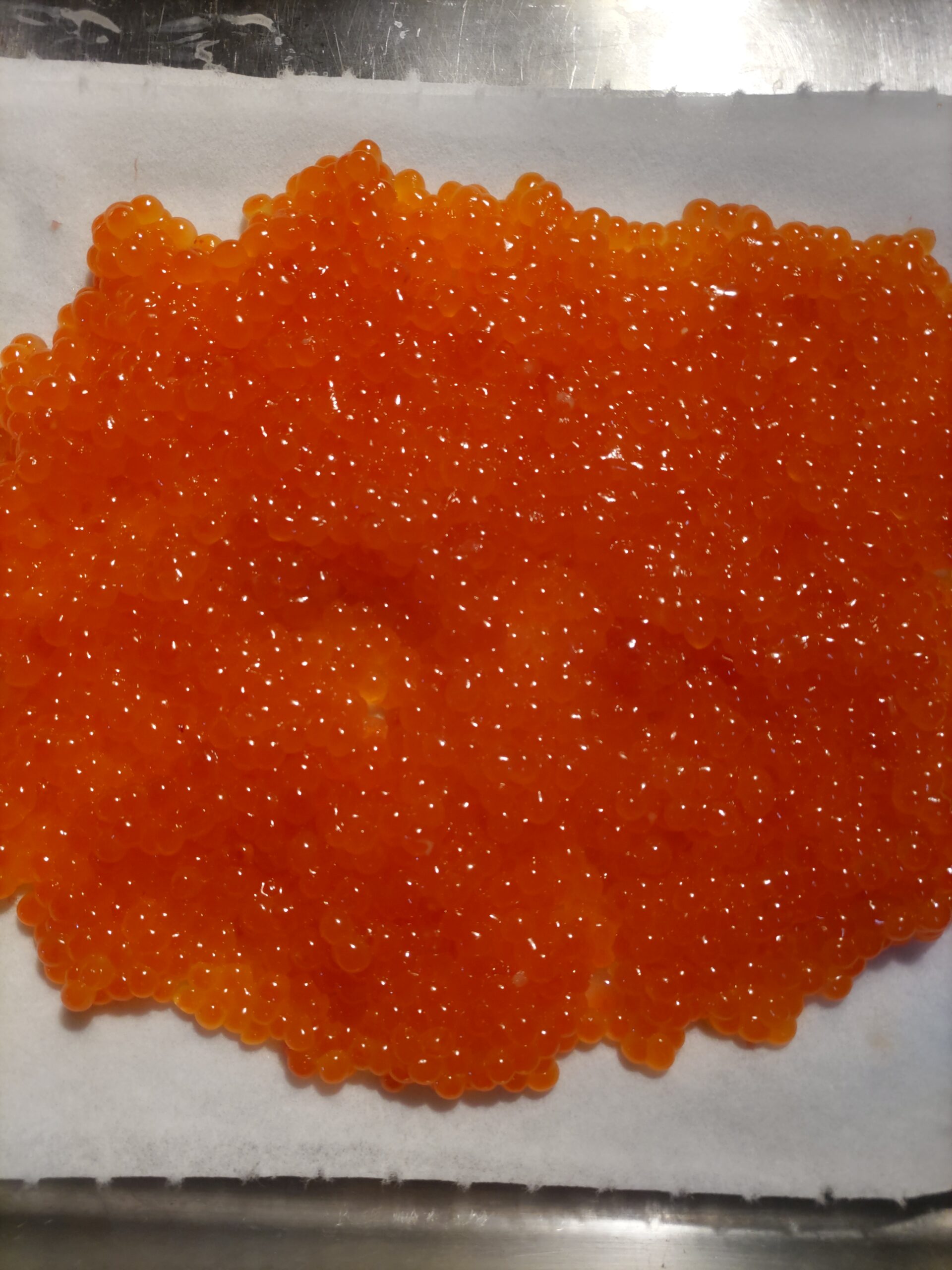 仕入単価が数年前の2倍以上の高値になっております「生すじこ」 取引先より、お薦め品があり仕入れ 今回は、自家製の特製しょうゆで漬け込みます