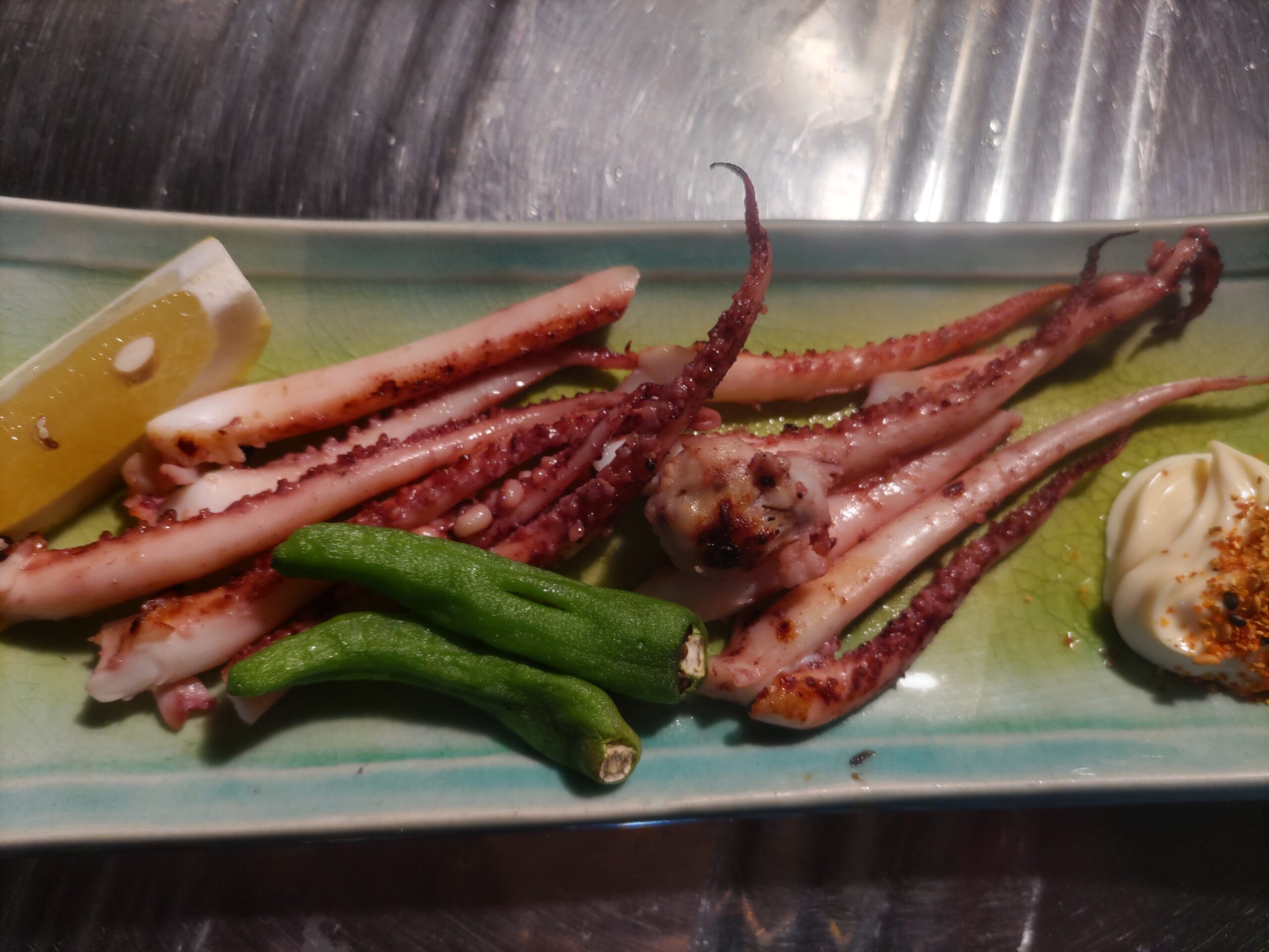 #するめいか #ゲソ塩麹焼 #レストラン #昭和歌謡動画が流れる店 #酒の肴 #喫煙可 #席でタバコが吸える居酒屋 #つきぢ厨房お和んや #築地 #魚料理 #ど冷えもん