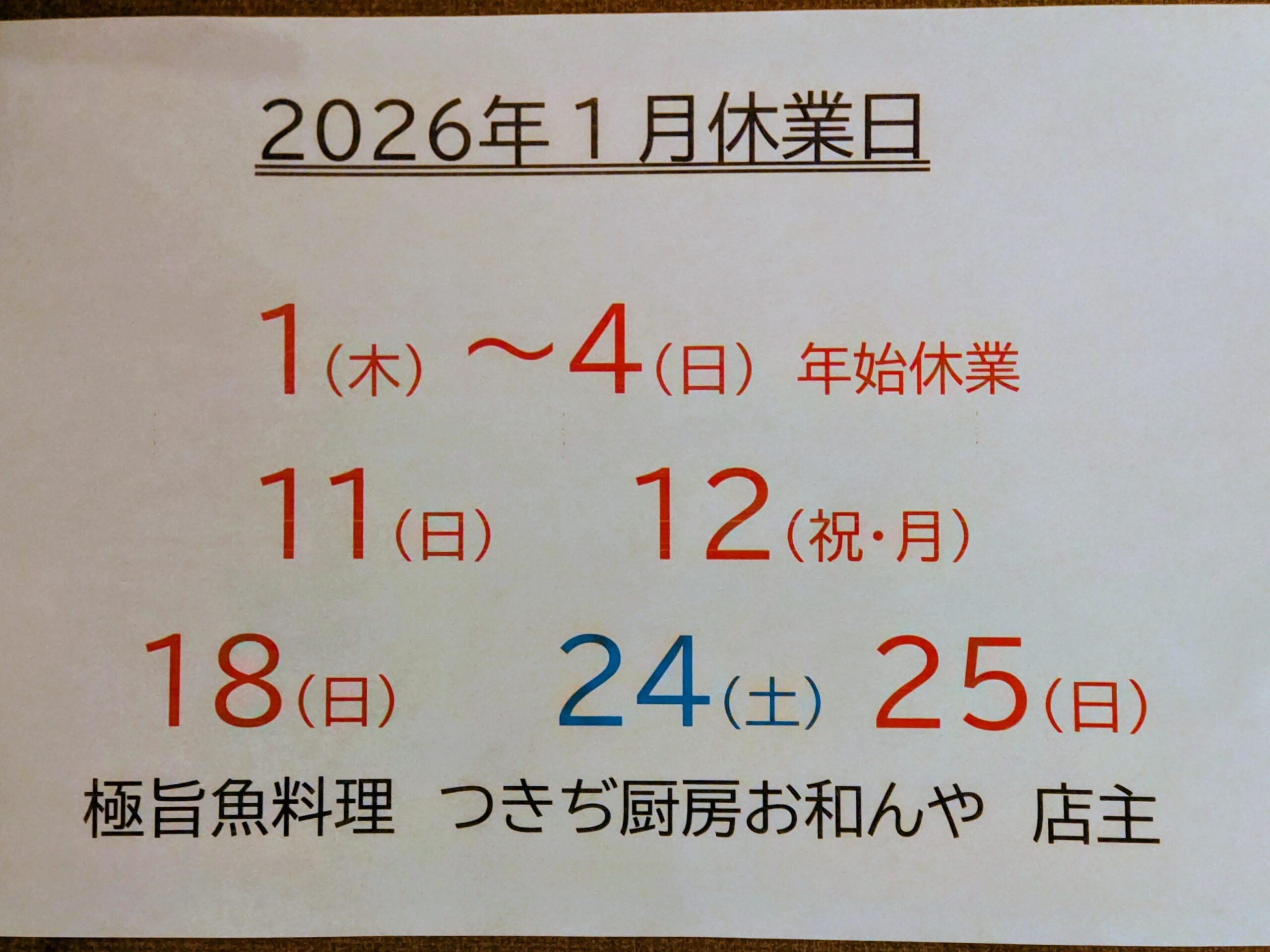 #1月休業日 #お問い合わせ方法 #レストラン #昭和歌謡動画が流れる店 #酒の肴 #喫煙可 #席でタバコが吸える居酒屋 #つきぢ厨房お和んや #築地 #魚料理