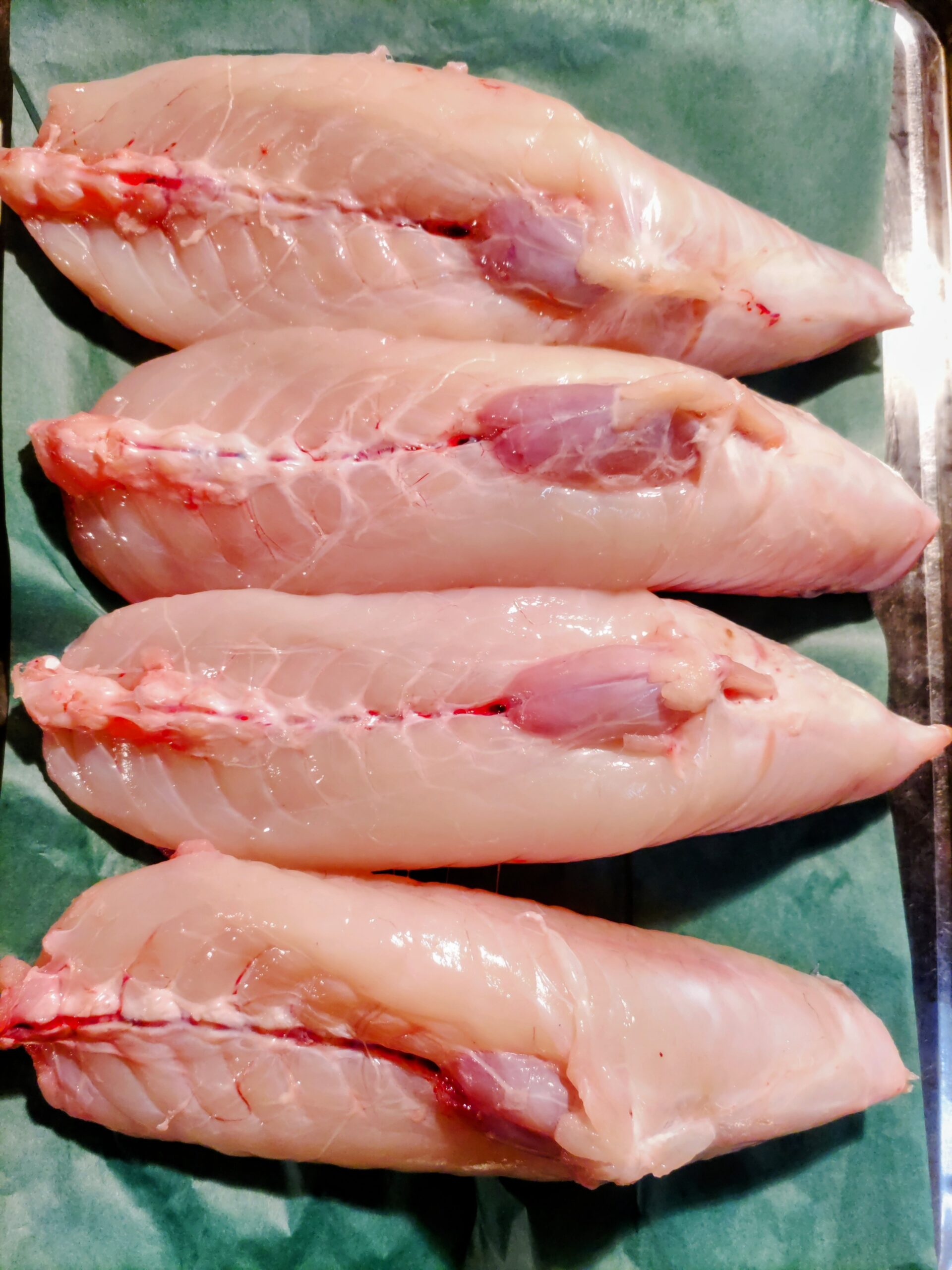春の彼岸ごろによくとれるので、彼岸河豚 活魚を捌いた身(筋肉)があったので、迷わず仕入れ 食用となるのは、身(筋肉)だけなので、刺身に添える皮はとらふぐの物を利用