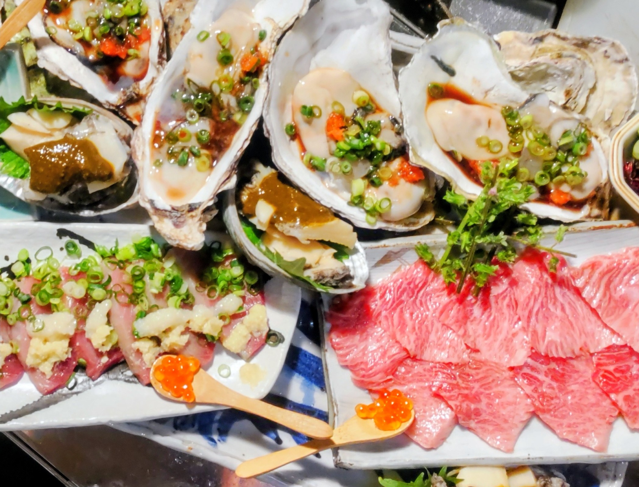 #雲丹と刺身を合わせて召し上がれ #刺身盛合せ #昭和歌謡動画が流れる店 #酒の肴 #喫煙可 #席でタバコが吸える居酒屋 #つきぢ厨房お和んや #築地 #魚料理