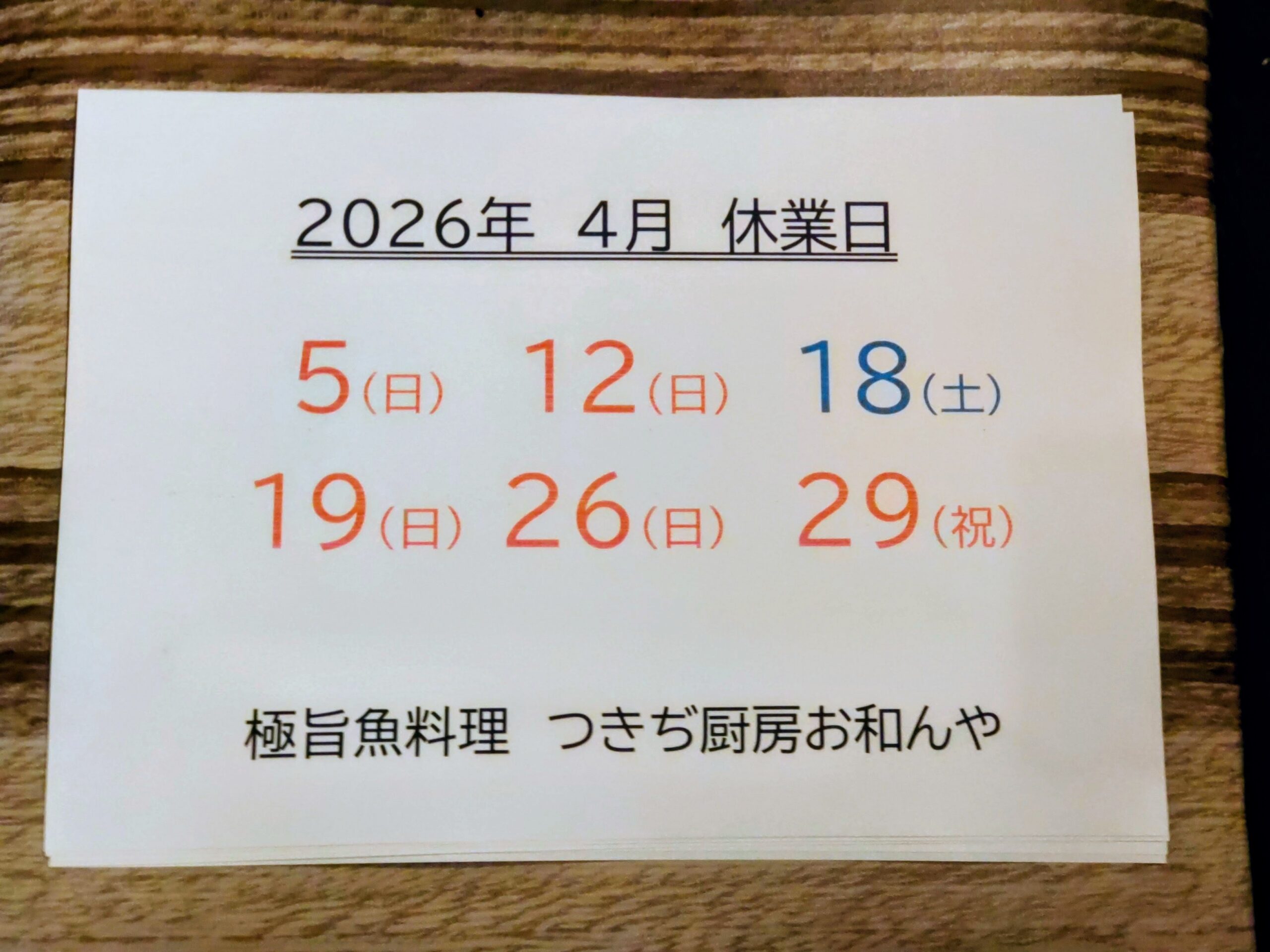 #4月 #休業日 #旨い魚 #昭和歌謡が流れる店 #酒の肴 #席でタバコが吸える居酒屋 #喫煙可 #つきぢ厨房お和んや #築地 #魚料理 #やさい料理 #凍眠 #ど冷えもん